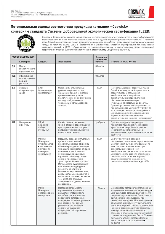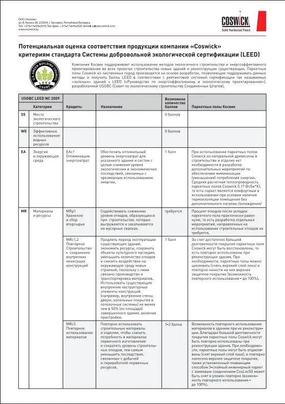 Coswick Системы добровольной экологической сертификации LEED